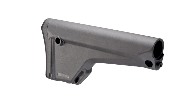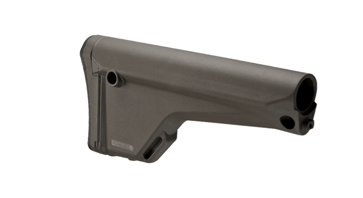 The MOE Rifle Stock (Magpul Original Equipment) is a drop-in replacement for AR15/M16 A1 and A2 rifle stocks utilizing the standard rifle-length receiver extension (buffer tube). Designed as a basic upgrade, the stock features integral 1.25" sling loop, optional dual-side front and rear QD mounting points, replaceable anti-slip rubberized butt-pad, and internal storage compartment accessible through the rear storage door. Made in U.S.A. FEATURES Mounts to rifle-length receiver extension tube without A2 spacer (not included) Sloping cheek weld combines a slim profile with user comfort Overall shape provides for offhand hold options Rubber butt-pad provides positive shoulder purchase to prevent slippage Large storage compartment easily accessible behind hinged butt-plate Knockout bosses on the bottom allow for the addition of an optional accessory rail Sling Mounts Bottom Rear - 1.25" Sling loop Front/Rear – Optional Sling Mounts fit up to 1.5" push-button QD swivels NOTE: The MOE Rifle Stock is a direct replacement for an A1 or A2 fixed stock. Fitting to a carbine with a collapsible stock will require a rifle-length receiver extension tube, rifle buffer and spring (not included). ITARInternational Traffic in Arms Regulations Controlled Product