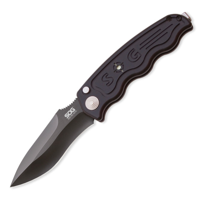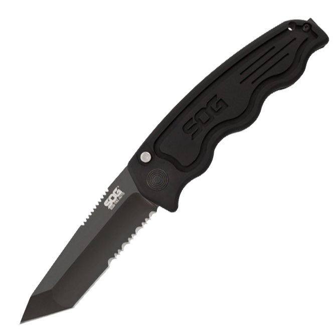 Available in fine edge, partially serrated and tactical drop. Relatively slim, and specifically tailored to the professional tactical users 6061-T6 hard-anodized aluminum handle is machined with insets for increased grip and control Safety button that can either lock the blade in the open or closed position Closed length: 4.5" Blade length: 3.5" Weight: 3.80 oz